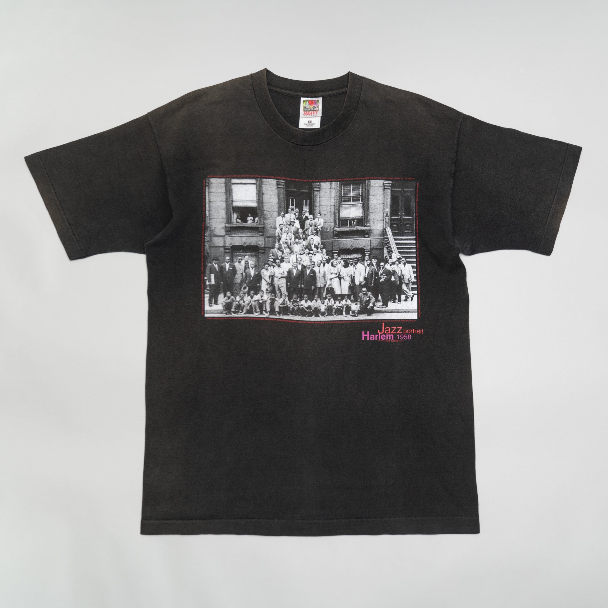1958年、ニューヨーク・ハーレムの126ストリートに集まった、57人のジャズ・ミュージシャンたちのグループフォト"A GREAT DAY IN HARLEM 1958"のTシャツ
