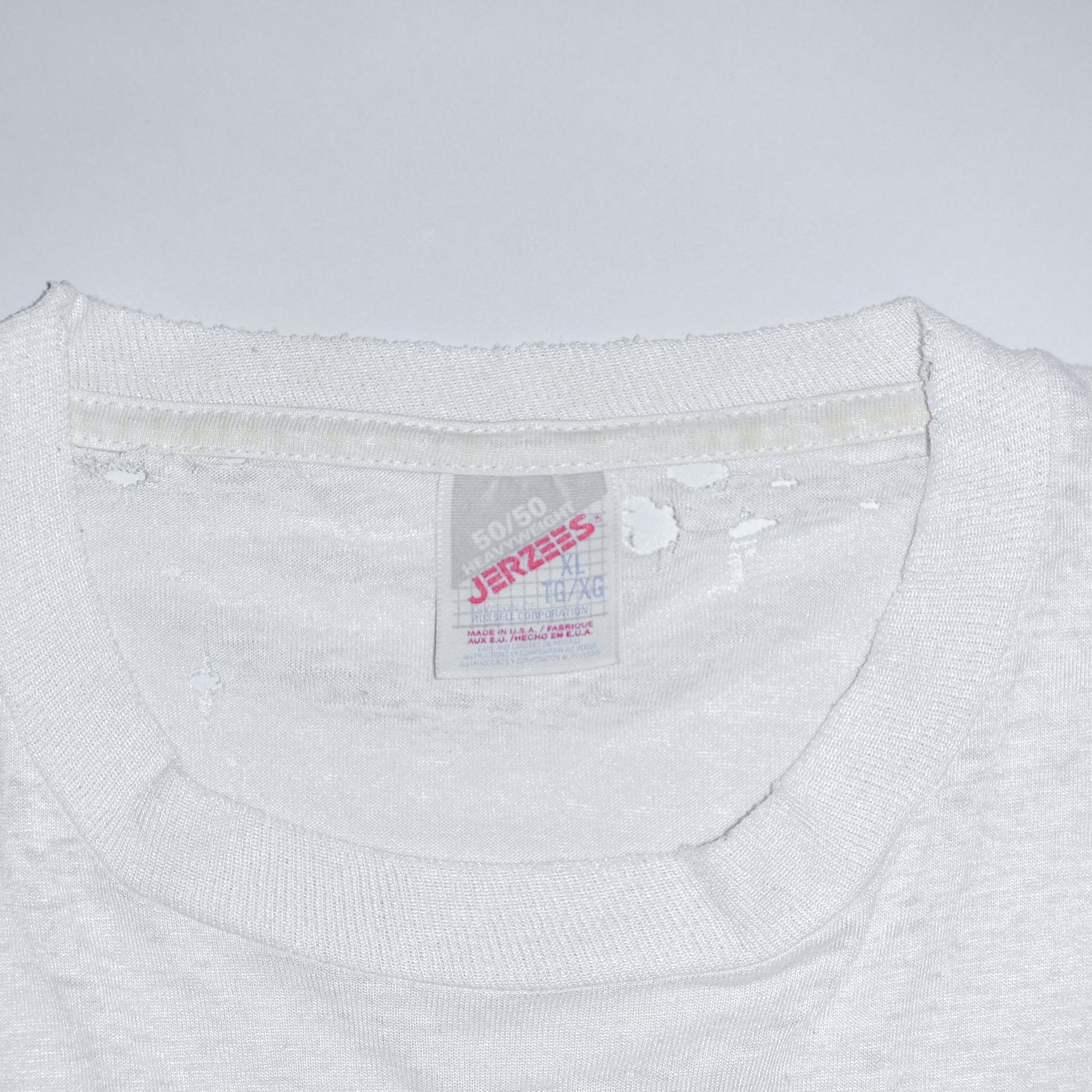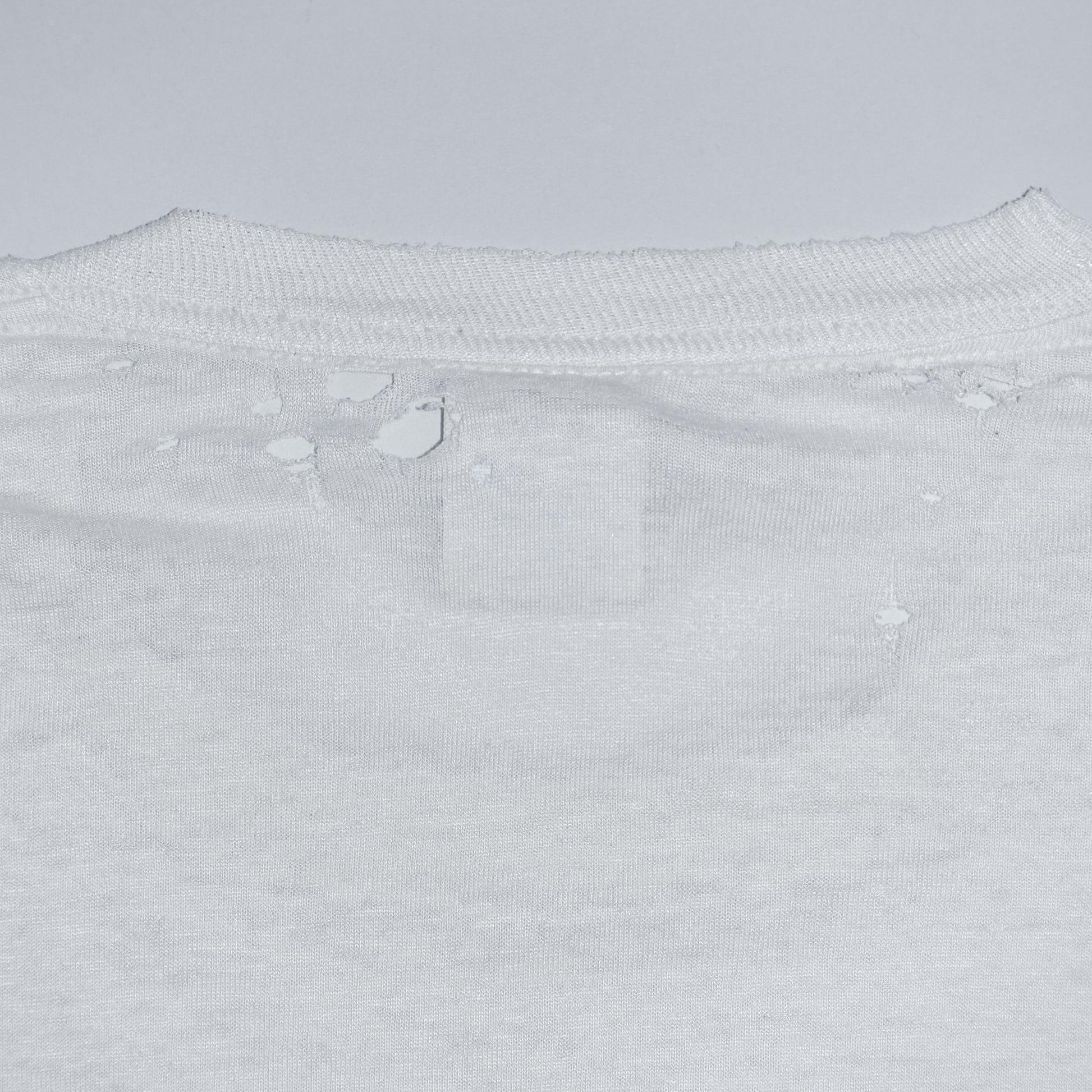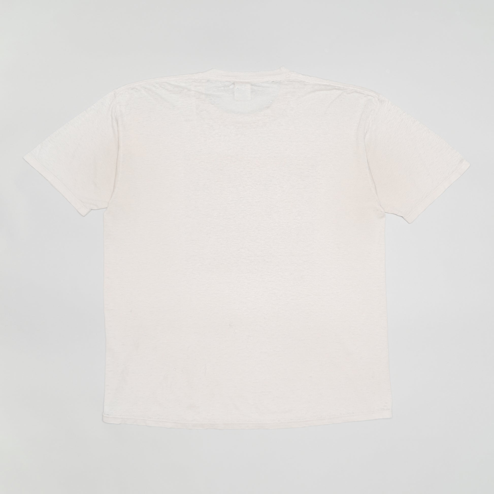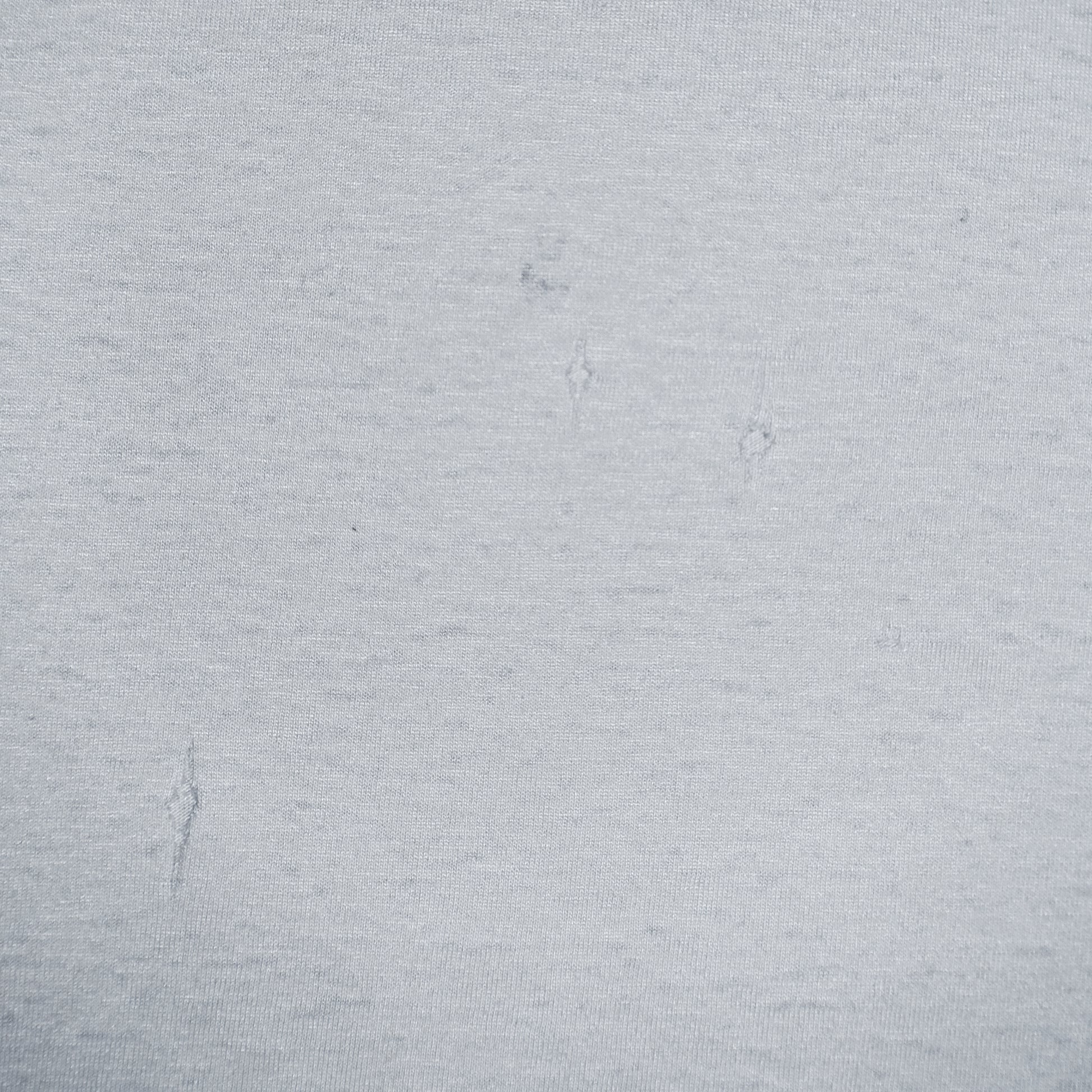 Tシャツ全体に生地痩せ、小穴や擦り切れが多く見受けられますが、特筆して大きな穴や、過度なダメージなどは生じていないため、経年変化した個体に抵抗がない方にとっては好ましいコンディションではないでしょうか。